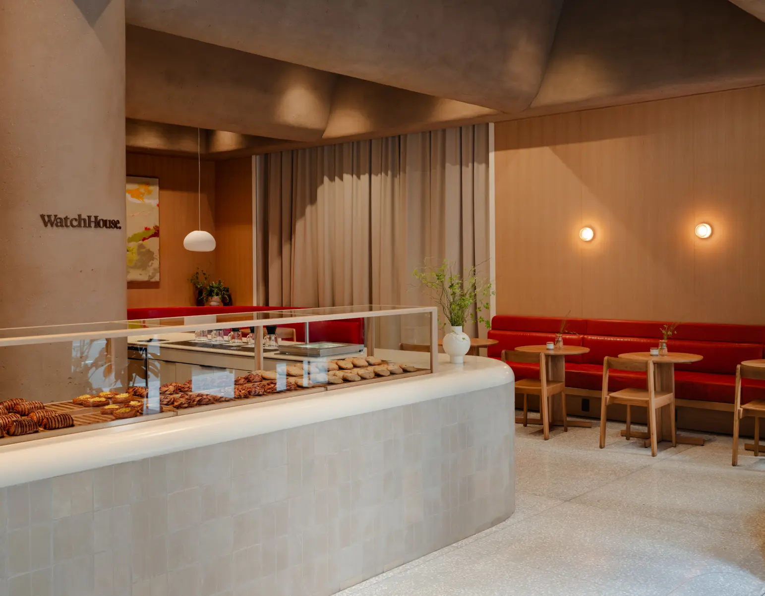Hver WatchHouse-lokation tilbyder en moderne fortolkning af den moderne kaffeoplevelse, omhyggeligt forankret i det lokale samfund. Varme brune og naturlige trætoner skaber en indbydende, intim atmosfære, mens tekstureret puds og metalaccenter bringer en livlig, urban energi.