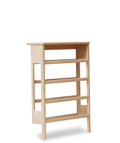Det er udformet af bæredygtig eg af højeste kvalitet og bearbejdet af snedkere med øje for detaljen. Pladen ovenpå skostativet er lavet bredere og udgør derved konsolbordet.