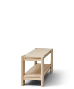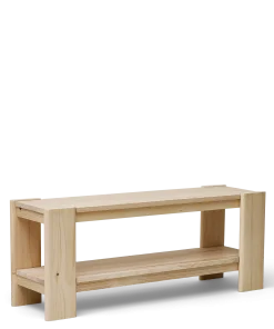 En smart og robust bænk i træ til stort set alle hjemmemiljøer med en lang praktisk underhylde til opbevaring af hverdagens ting og sager. De markante H-formede gavle, som fremhæver fyrretræets smukke åretegning, favner siddefladen, der ligesom resten af møblet er fremstillet af massivt fyrretræ.
