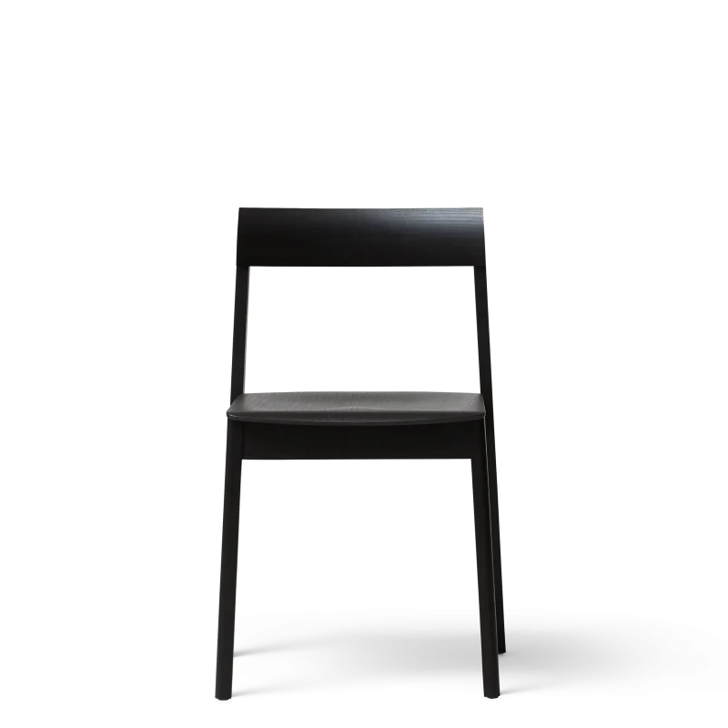 Stolens solide og stærke ben, kombineret med et sæde af finér, giver stolen en overraskende lethed og imponerende skarphed. Den smukke rygstøtte er udformet i ét solidt stykke træ og dampbøjet forfra og bagfra.