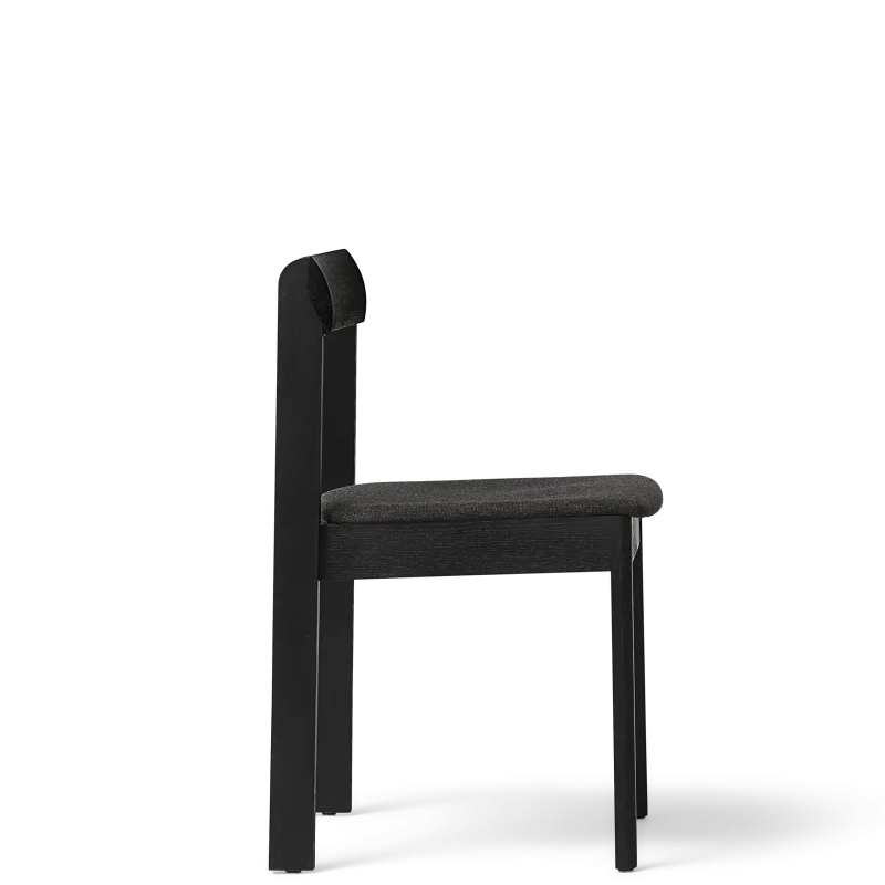 En arketypisk stol skabt af Form & Refine. Den usædvanlige sædeform, som er inspireret af menneskekroppens anatomi, fremmer en god siddestilling og giver fremragende siddekomfort. Ryglænets organiske form giver stolen en minimalistisk og personlig stil. Kombinationen af stærke, massive ben og Hallingdal møbelstof giver stolen et overraskende let og skarpt visuelt udtryk.