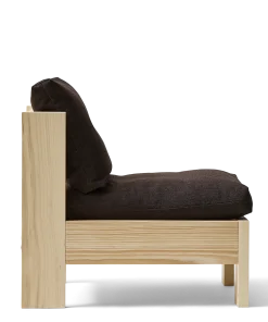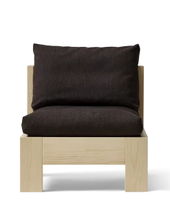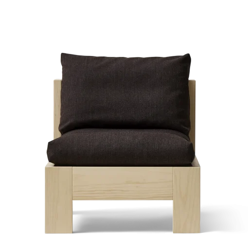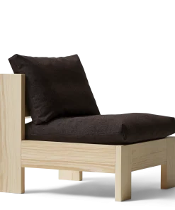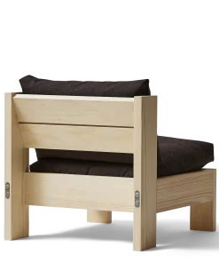 ”Med loungestolen ville jeg gerne hylde det brutalistiske udtryk, hvor hver komponent bliver en genstand i sig selv. Stellet er i udpræget grad den bærende enhed og puder bæres her af.”