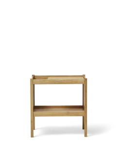 En lille fleksibel ledsager til ethvert rum i hjemmet. Kontrasten mellem benenes skarpe profiler og bordpladens blødt afrundede kanter skaber en markant og raffineret effekt. En god, funktionel detalje er mellemrummetmellem stel og bordplade, som giver et praktisk sted at opbevare blade og aviser. Bordet er omhyggeligt dimensioneret, så det kan indgå i en lang række forskellige funktioner og sammenhænge, fx som sofabord, bladholder, sidebord eller sengebord.