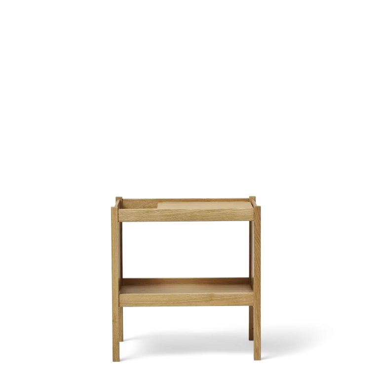 En lille fleksibel ledsager til ethvert rum i hjemmet. Kontrasten mellem benenes skarpe profiler og bordpladens blødt afrundede kanter skaber en markant og raffineret effekt. En god, funktionel detalje er mellemrummetmellem stel og bordplade, som giver et praktisk sted at opbevare blade og aviser. Bordet er omhyggeligt dimensioneret, så det kan indgå i en lang række forskellige funktioner og sammenhænge, fx som sofabord, bladholder, sidebord eller sengebord.