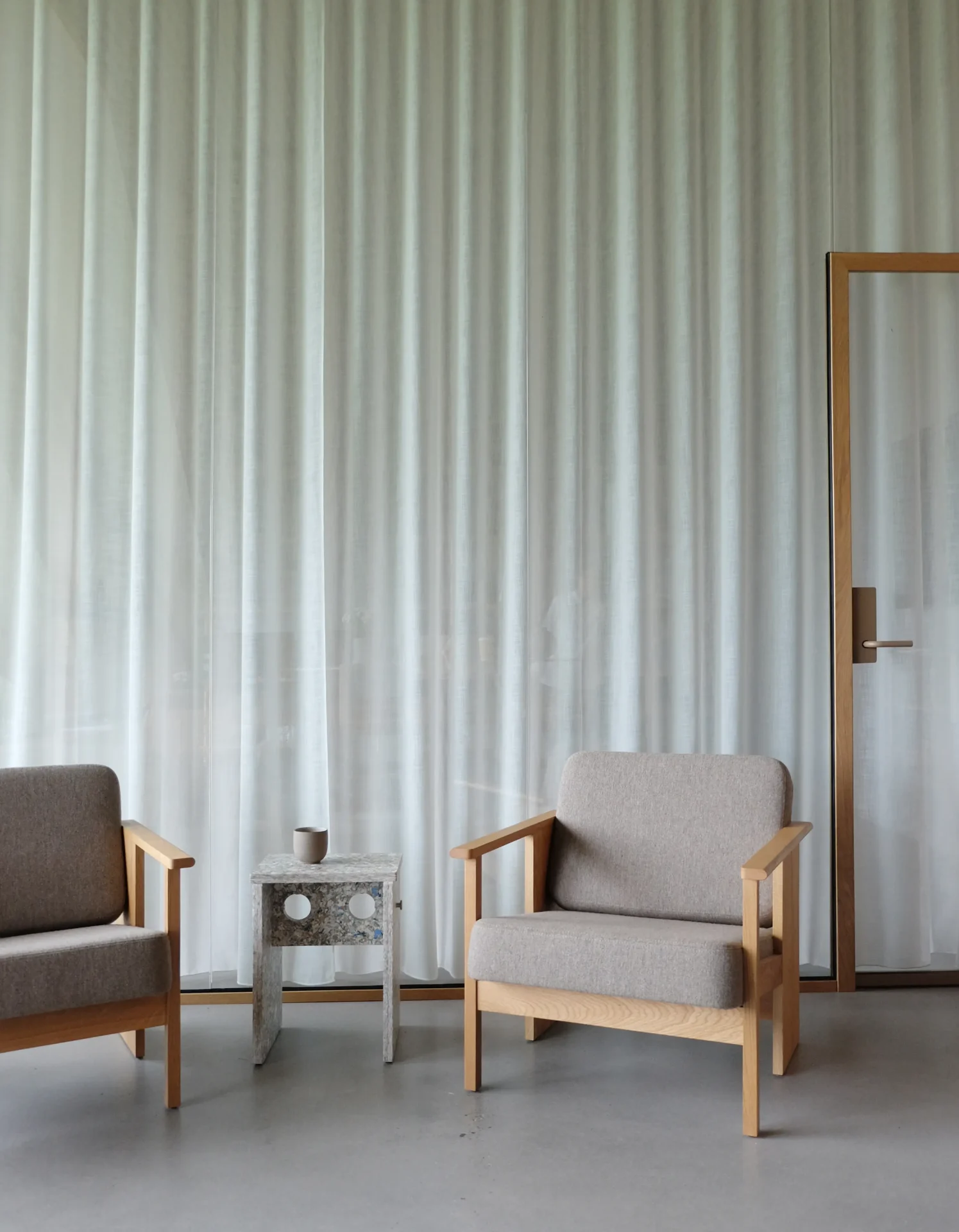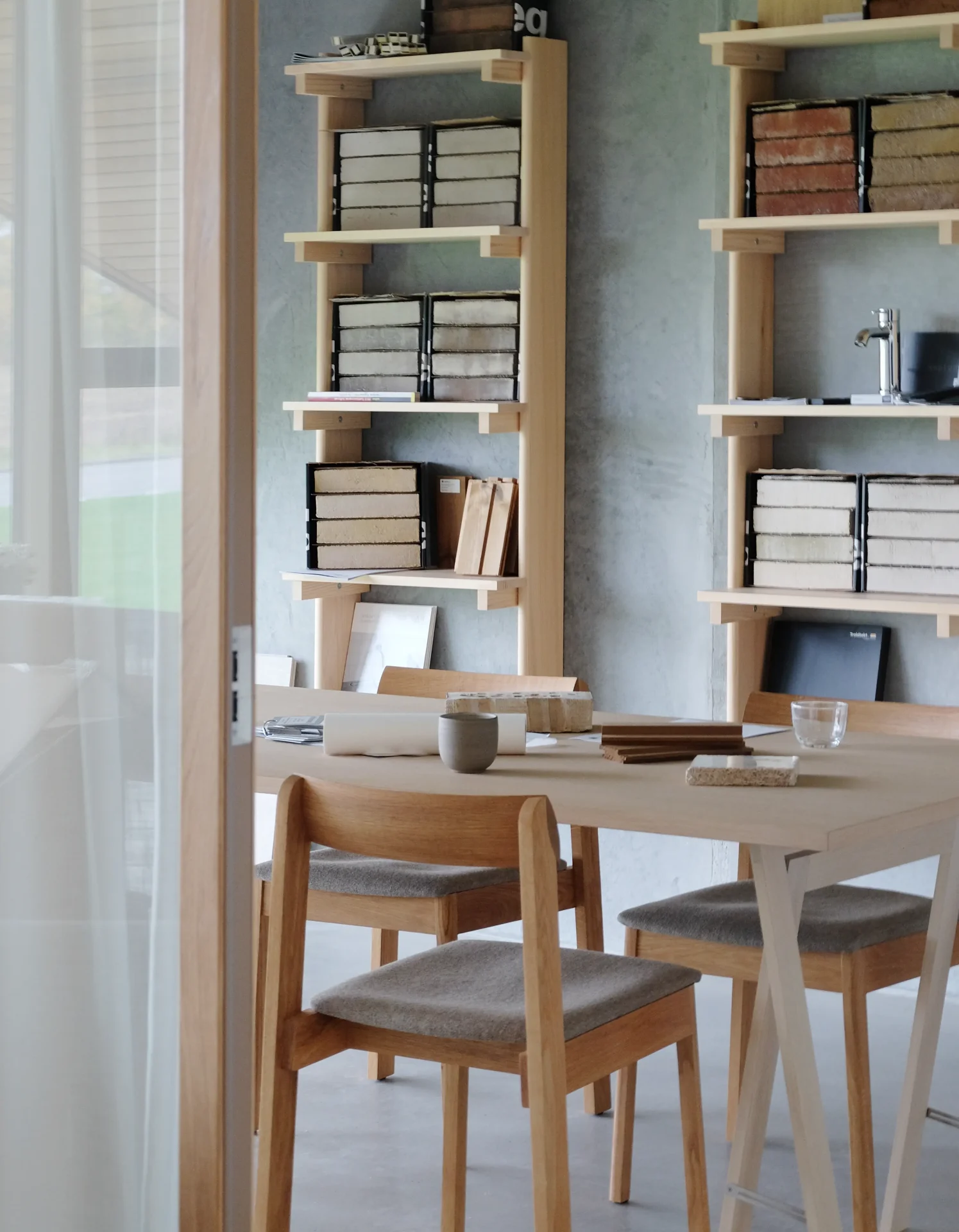 Im Büro von Lasse Larsen Huse trägt Form & Refine mit seinem vielfältigen Produktportfolio und seinem Fokus auf natürliche Materialien zur Wertigkeit und Atmosphäre bei. Dies schafft ein Gefühl von Ruhe und minimalistischer Ordnung in den offenen, geradlinigen Büroräumen.