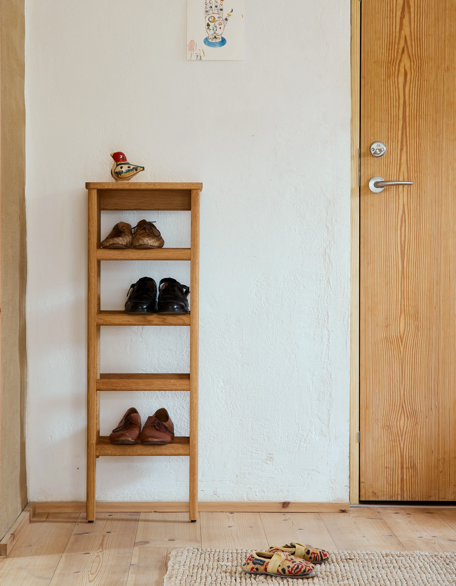 The A Line Shoe Rack is a small harmoniously designed combined shoe rack and console table that helps make the best use of the narrow space found in hallways, utility rooms or functional entrance halls. It is made of sustainable sourced oak of the highest quality and its contours are rounded carefully in line with artisan craft tradition.