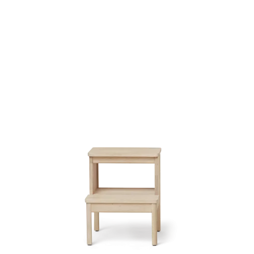 ”Mit dem A Line Stepstool wollten wir ein stabiles, kleines Möbelstück schaffen, das überall im Haus verwendet werden kann. Die untere Stufe geht über die gesamte Breite des Möbelstücks, so dass der Tritthocker auch als Nachttisch oder Beistelltisch verwendet werden kann. Das geschwungene Profil der Stufen und Beine verbindet sich optisch mit den tragenden Seiten zu einem harmonischen Ganzen.”