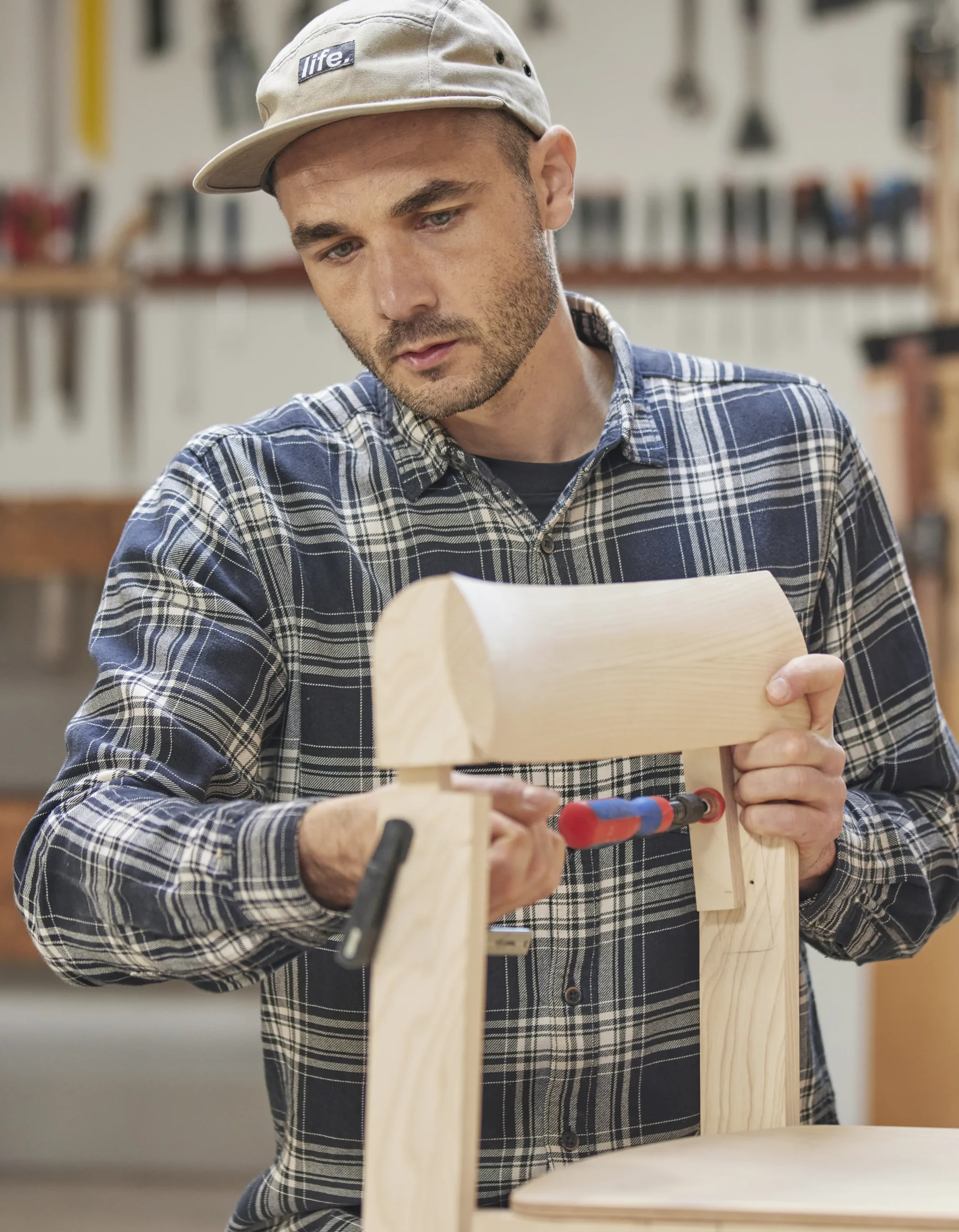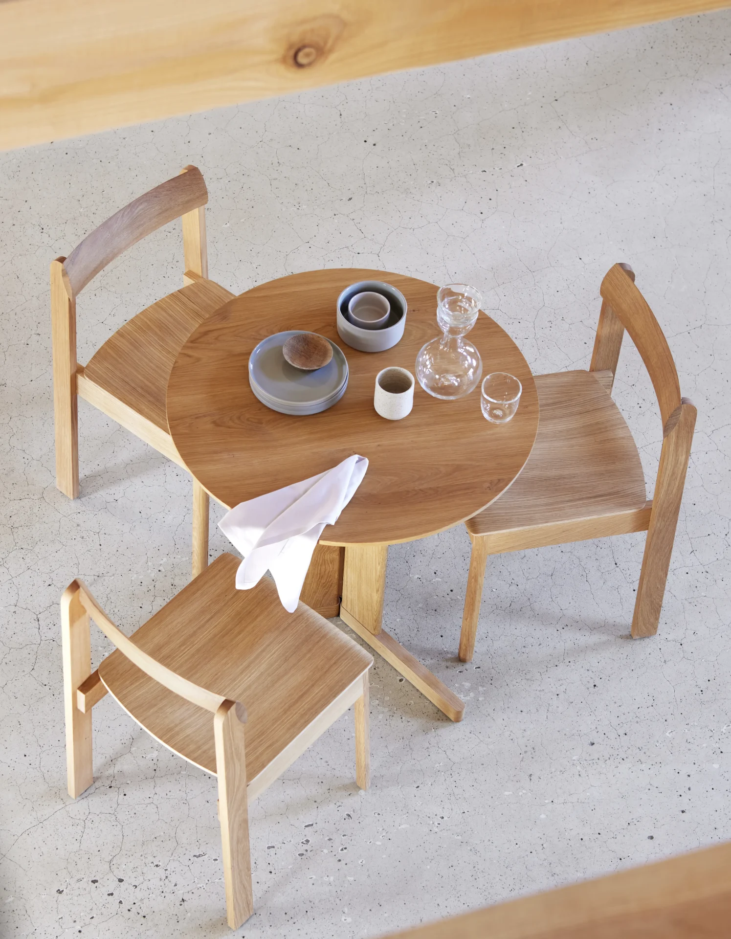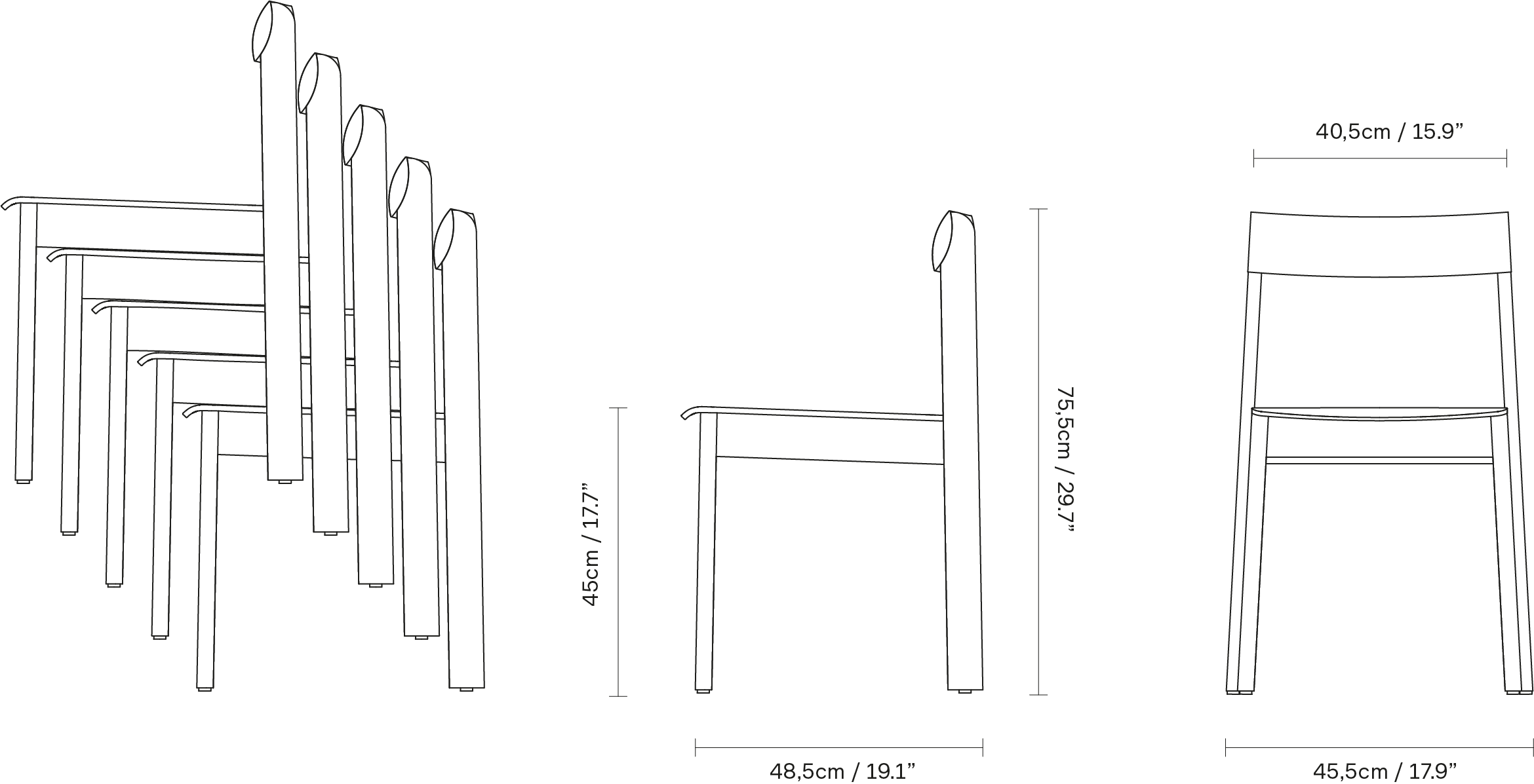„With this chair we searched to balance something refined and robust at the same time. We aimed for a chair with distinct character and gave it elongated back legs that smoothly grip the curved backrest. It should also be stackable, comfortable and fit into any environment.“