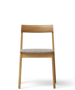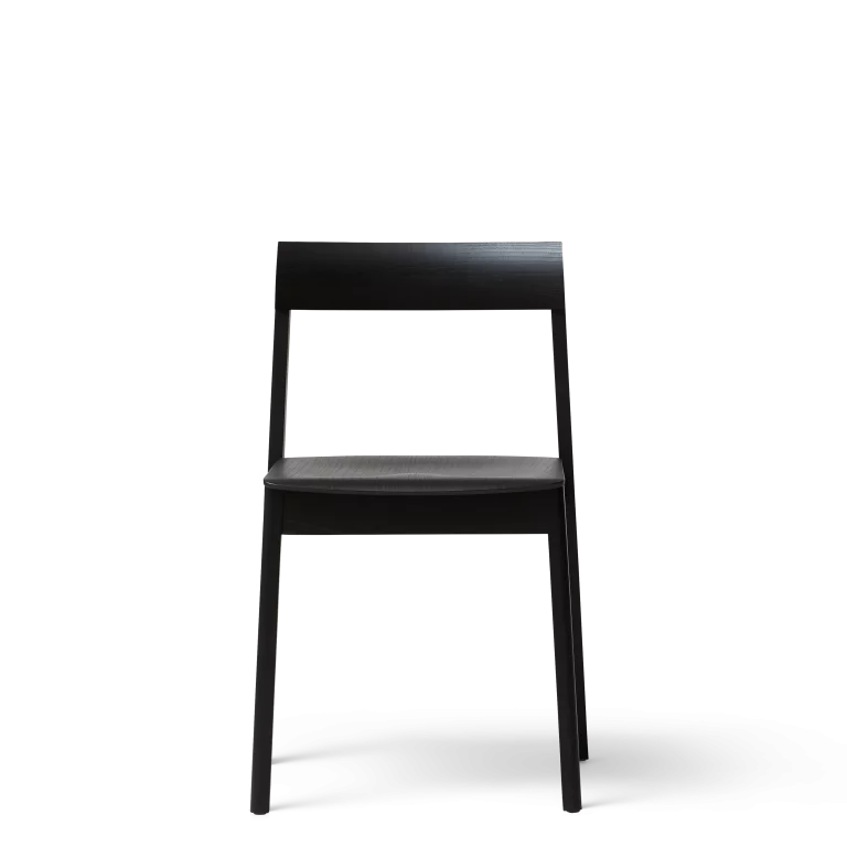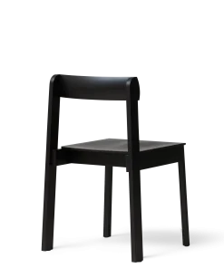 Außerdem verleiht die solide, organisch geformte Rückenlehne dem Stuhl einen minimalistischen und eigenen Touch. Die edle Rückenlehne ist aus einem einzigen Stück Holz geformt und von beiden Seiten gedämpft. Zusätzlich tragen die starken Beine in Kombination mit der Furniersitzfläche zu der unerwarteten Leichtigkeit und dem besonders schönen Design des Stuhls bei.
