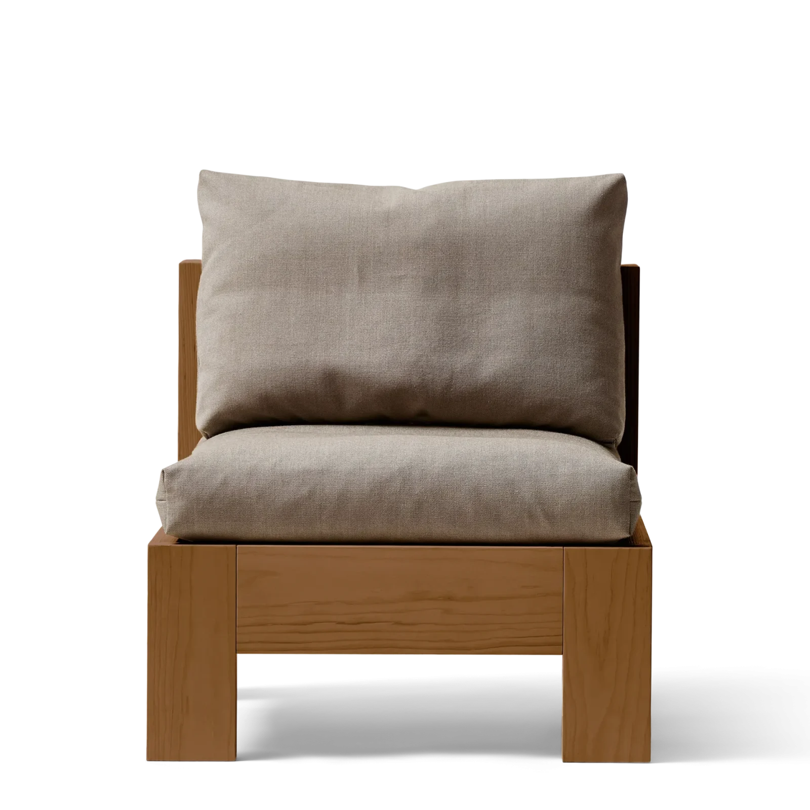 „Mit diesem Lounge-Sessel wollte ich den Brutalismus würdigen, bei dem jedes Bauteil zu einem Objekt wird. Der Rahmen ist eindeutig die tragende Einheit, auf der die Kissen ruhen.”