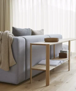 Eine Kollektion vielseitiger, schraubenloser Regale mit organischem Design und stabilen, blattförmigen Beinen