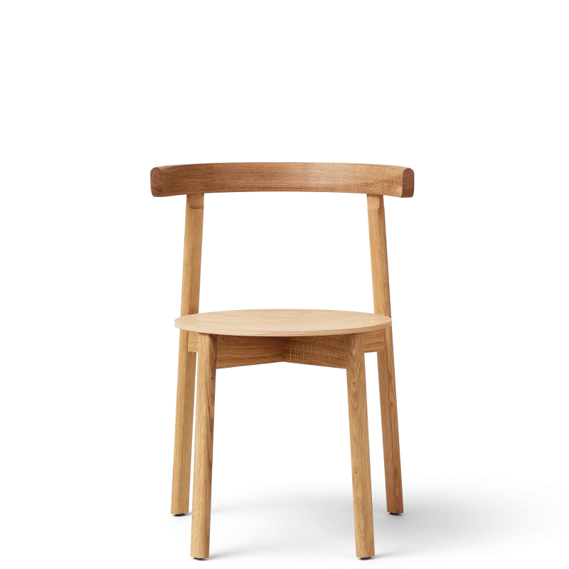 Lunar Chair is a versatile wooden dining chair with a great balance between functionality, aesthetics, and comfort. The characteristic rounded backrest with integrated armrest, crafted from a single piece of solid wood, ensures optimal comfort with both elbow and lower back support and enables a variety of seating positions.
