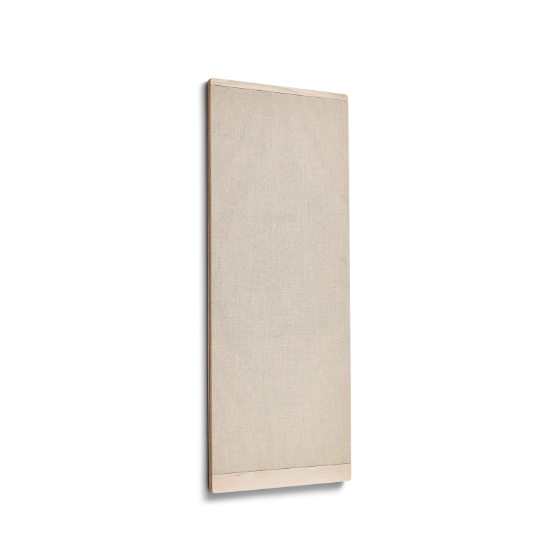”Wir wollten eine Pinnwand mit einem warmen und weichen Look machen, bei dem der Stoff zur Gemütlichkeit des Eichenholzes passen sollte. Der Rahmen der Pinnwand hat einen großen Radius auf der Rückseite, der sie mit einem weichen Schatten von der Wand abhebt.”
