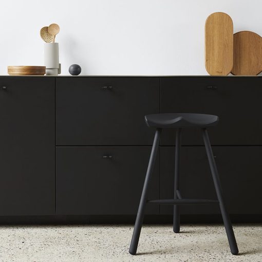 Ein echter Klassiker von 1936 – hergestellt in Dänemark, wo er bis heute von unserer ortsansässigen Schreinerei produziert wird. Die Sitzfläche mit den anatomisch geformten Rundungen besteht aus einem großen, soliden Stück Holz. Aufgrund der von Natur aus unterschiedlichen Holzmaserung ist jeder Shoemaker Chair™ einzigartig. Die abgerundeten Stuhlbeine ergeben zusammen mit der stabilisierenden T-Verbindung ein harmonisches und ästhetisches Möbelstück mit starken Bezügen zum nordischen Design. Die Konstruktion erscheint ziemlich einfach, ist jedoch eine handwerkliche Herausforderung. Das Holzstück für die Sitzfläche muss sehr exakt geschnitten werden, um höchsten Komfort zu erzielen. Am Ende des Produktionsprozesses wird jeder Stuhl noch von Hand bearbeitet, bevor er den dreistufigen Prozess des Beizens oder Ölens durchläuft.