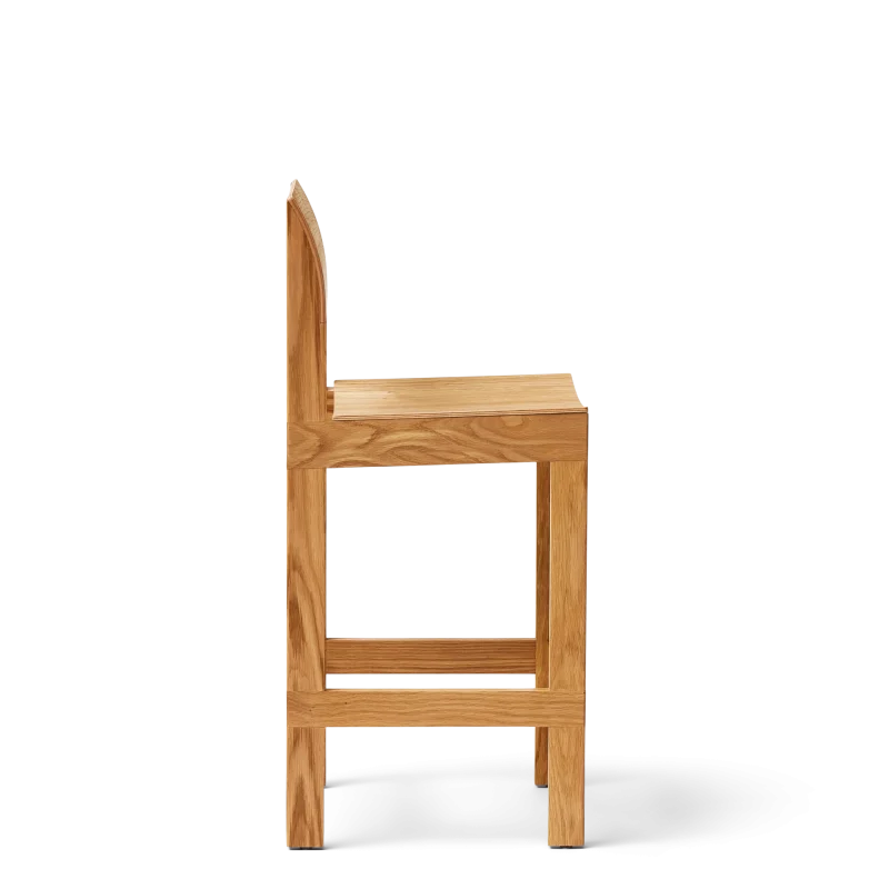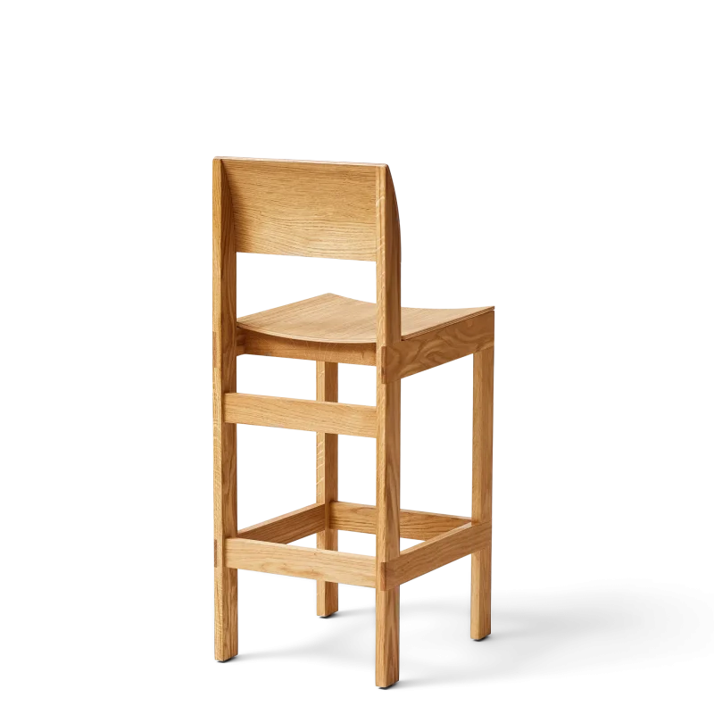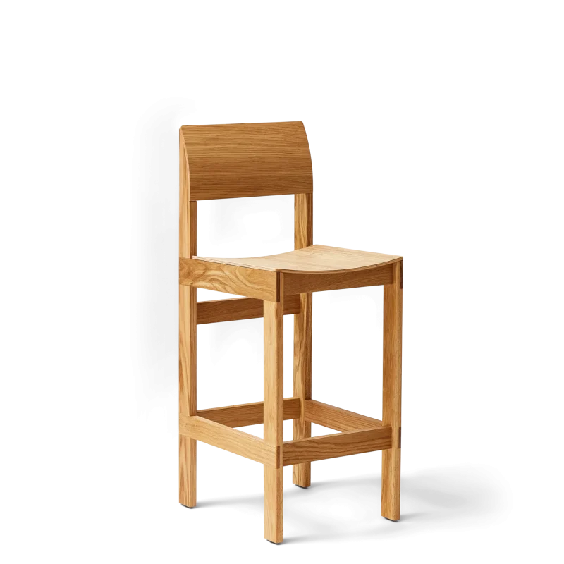Ein bequemer Bar Stuhl mit skulpturaler Klarheit
