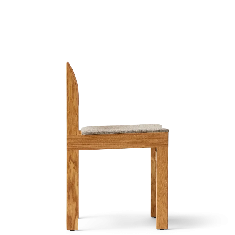 ”Da die gebogene Rückenlehne im Vergleich zu einem traditionellen Stuhl umgekehrt ist, entsteht eine große Fläche auf dem Rücken, die den Komfort erhöht. Der Stuhl sollte in seinem Ausdruck sehr präzise und grafisch wirken, weshalb ich mit den Gelenken gespielt habe, um dies zu unterstreichen”