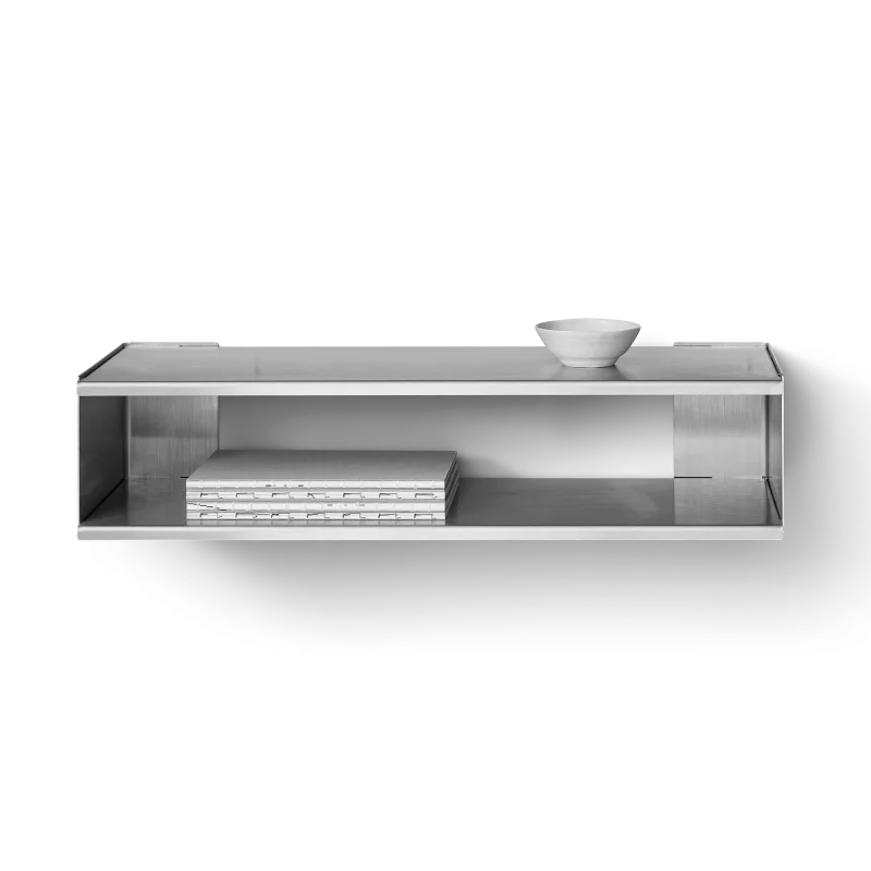Dieses raffinierte und vielseitige Stahlregal wurde für das urbane Wohnen entworfen und bietet mehrere Funktionen – als Konsole im Flur, als schmales Ausstellungsregal oder als stilvolle Aufbewahrungsmöglichkeit für Alltagsgegenstände und Schuhe.