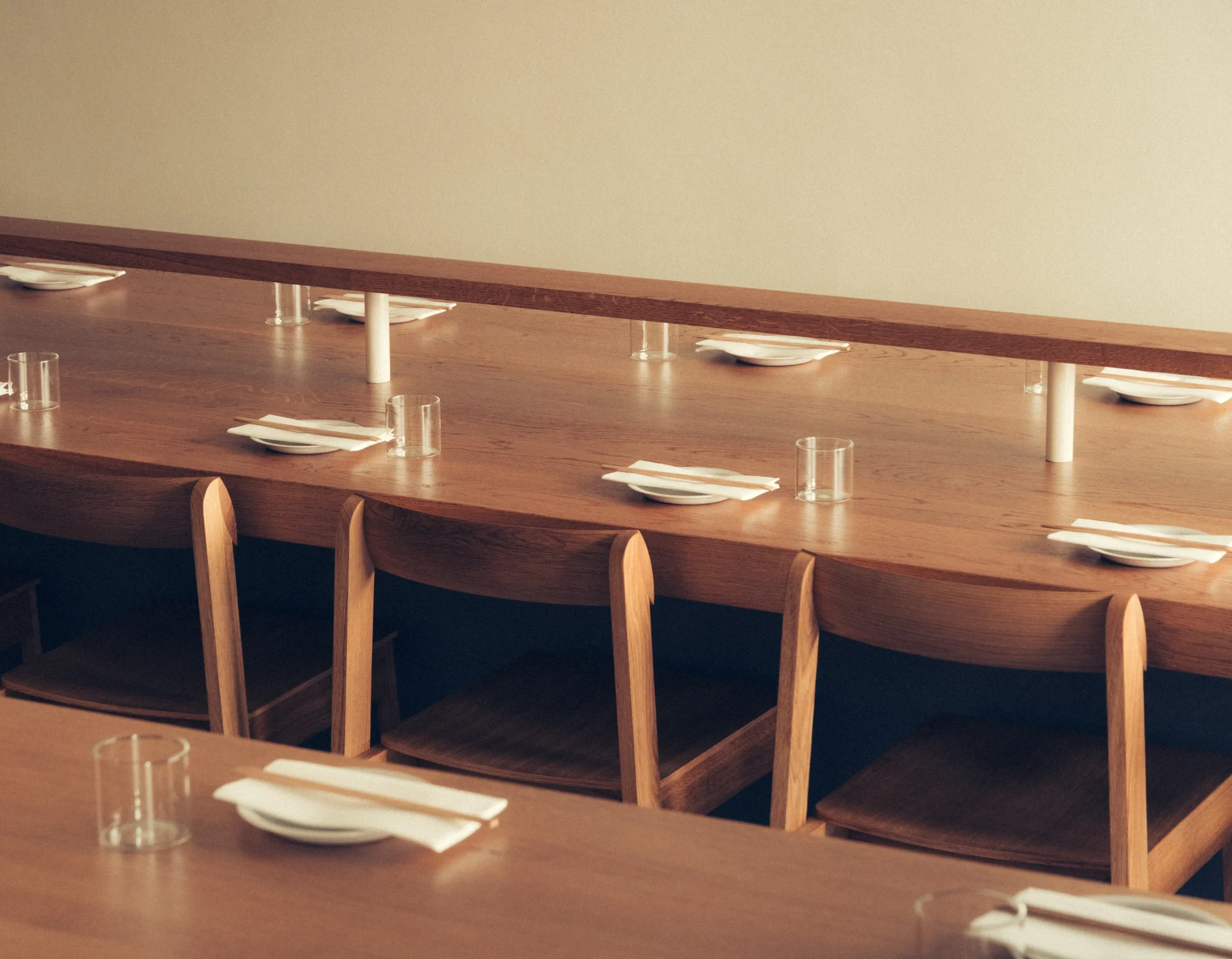 At the heart of the space stands the bar, opening a direct view into the kitchen and establishing both a visual and emotional connection to the team behind the food.