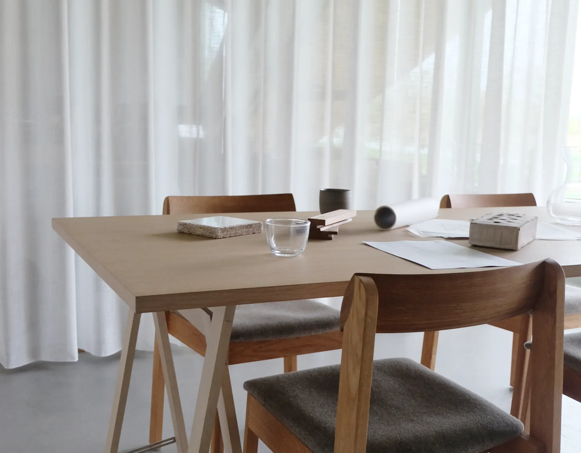 At the office of Lasse Larsen Huse, Form & Refine adds to the overall quality and warmth with its diverse product portfolio and focus on natural materials. This creates a sense of peace and minimalist order in the open, honest office space.