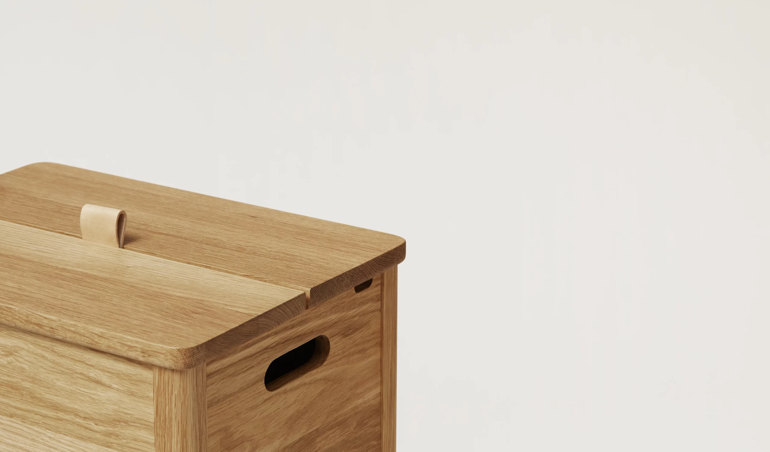 ”Our wish was to create a classic, yet simple laundry box with beautiful details around the lid. The elongated format adds to a refined appearance that takes up minimal space wherever placed”