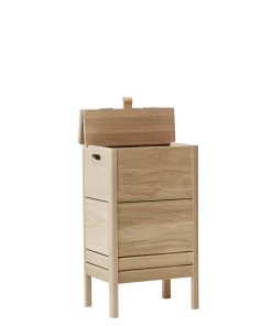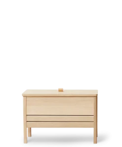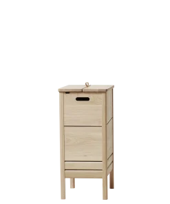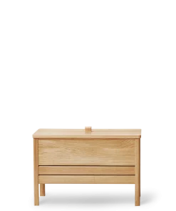 This laundry box is a rediscovered classic made of solid, highly durable, oak. It is a very practical container with a large amount of storage space. The lid is lifted by a small leather handle on the top and the handles on each side make it possible to move the box around easily while in use.
