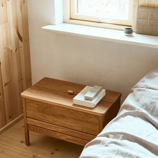 A Line Storage Bench has turned into a collection of functional furniture. The collection is a mix of rediscovered classics and new reinterpretations of storage essentials.