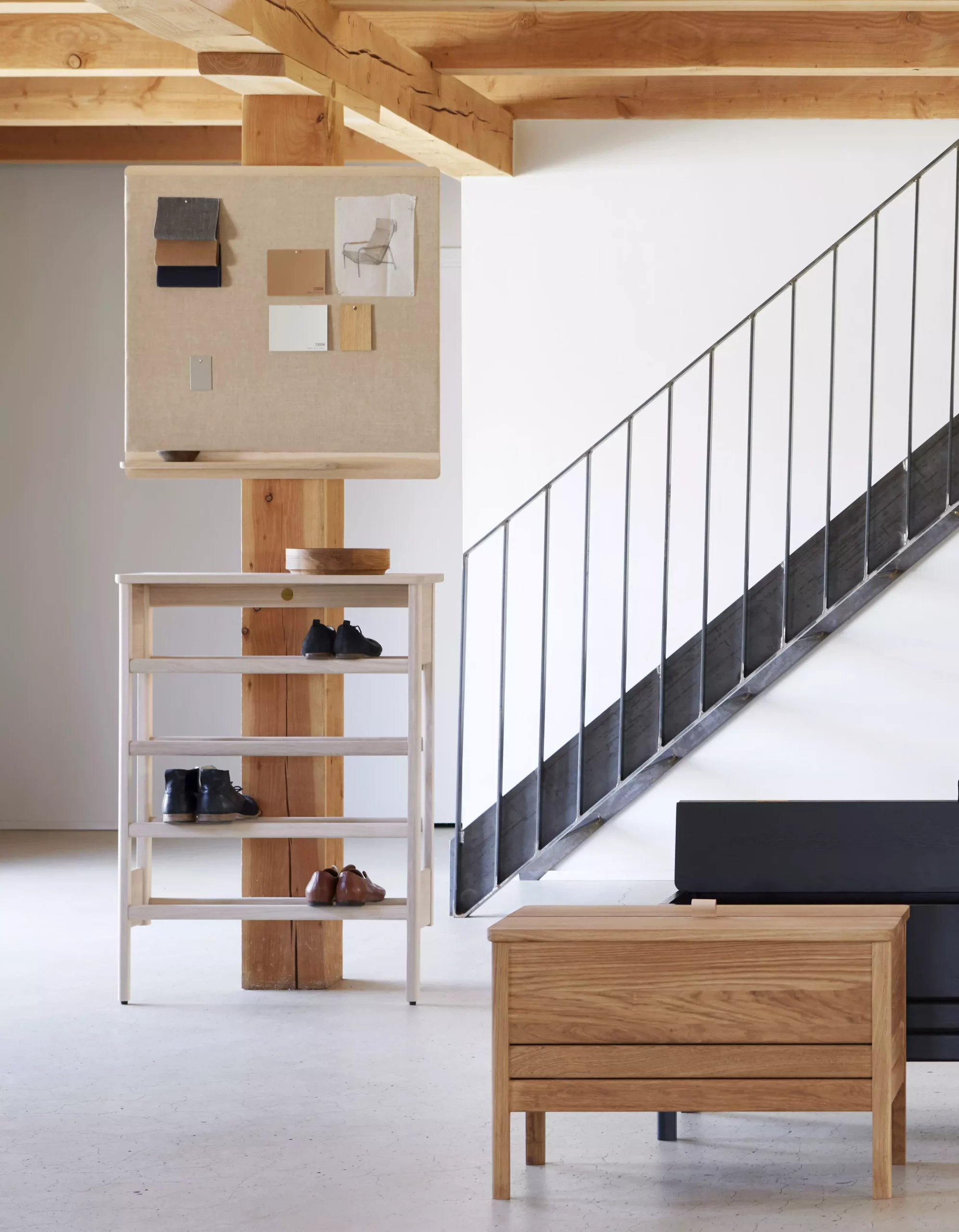A Line Storage Bench has turned into a collection of functional furniture. The collection is a mix of rediscovered classics and new reinterpretations of storage essentials.