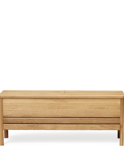 A Line Storage Bench is an updated version of the classic storage bench – where functionality meets clean form. A solid and versatile bench with slightly reduced dimensions and minimalistic characteristics.