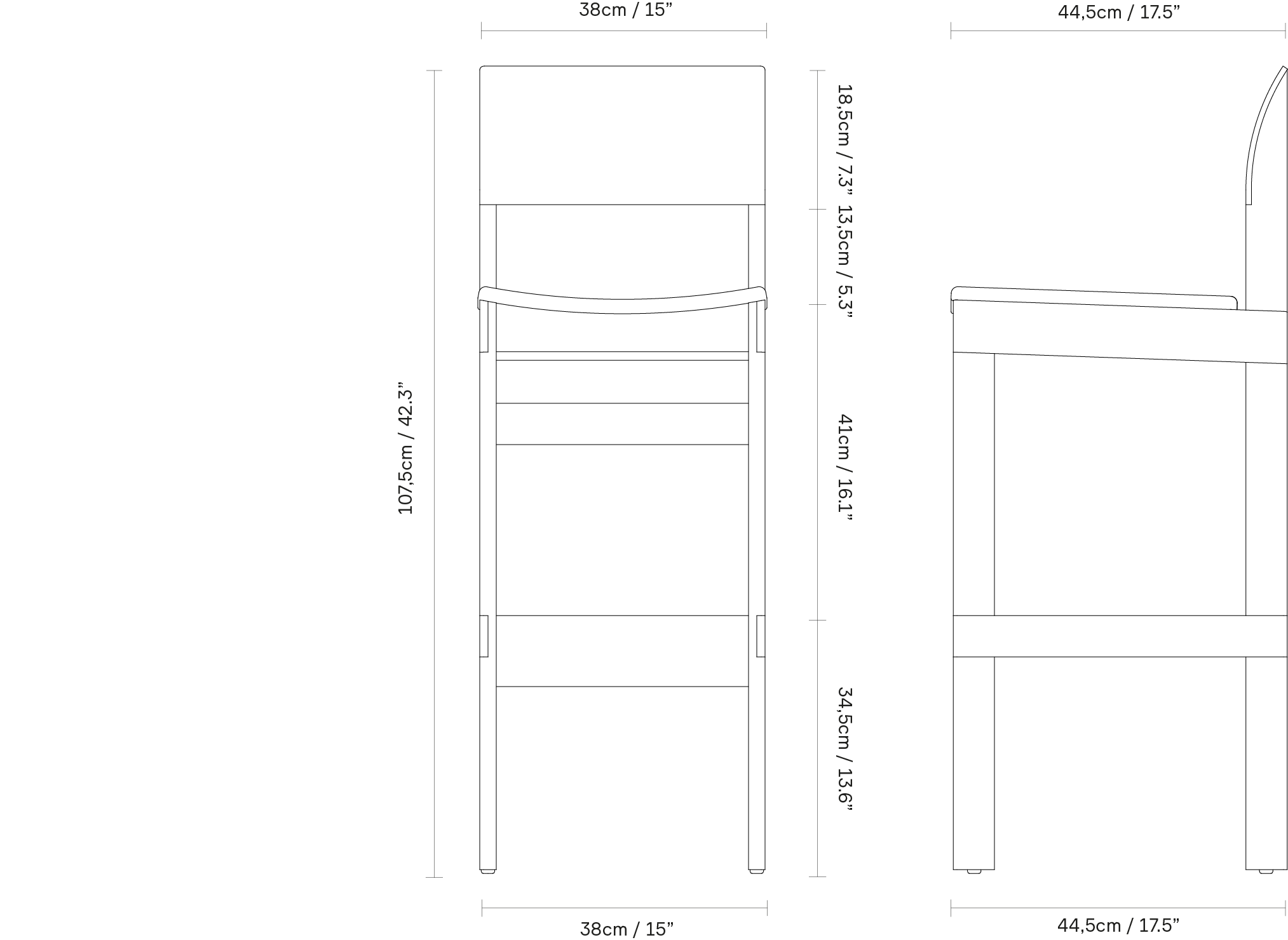Dimensions: W: 38 cm, H: 107,5 cm, D: 44,5 cm, Seat Height: 76,5 cm